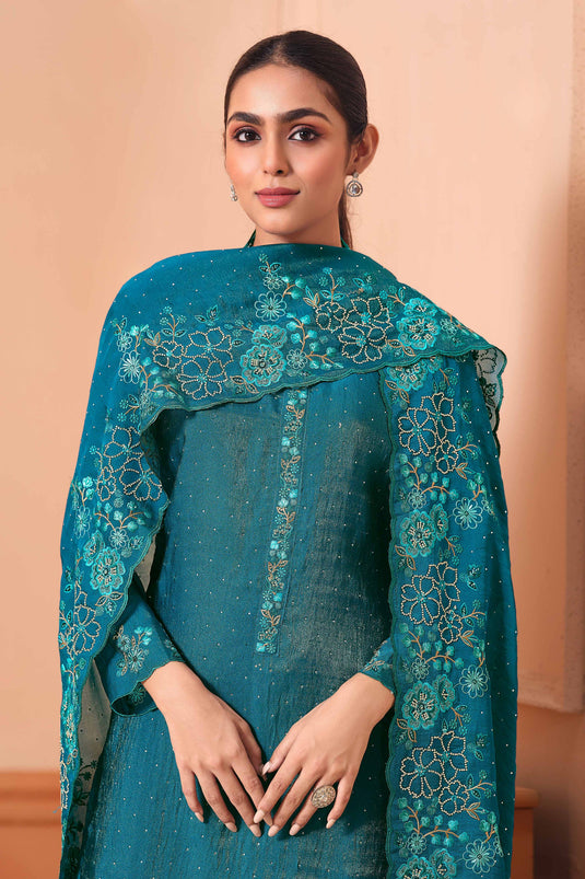 Rs. 5,600.00Rs. 11,200.00 Original Price Save 50%/ Fancy Fabric Teal Embroidered Readymade Designer Salwar SuitSave 50%