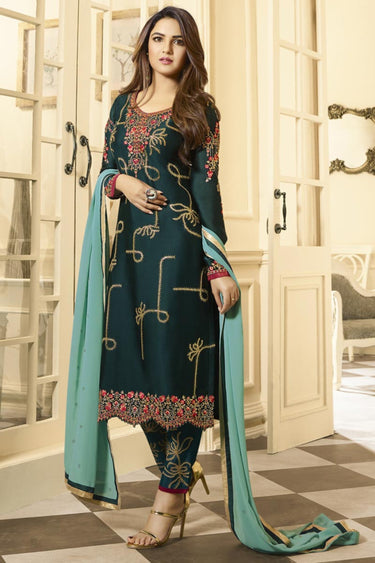 Jasmin Bhasin Incredible Satin Georgette Teal Color Salwar Suit
