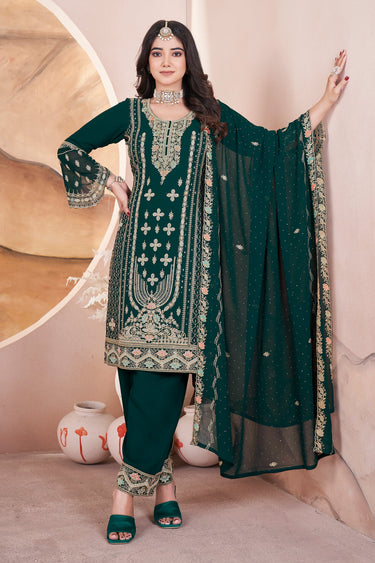 Teal Green Color Georgette Embroidered Readymade Designer Suit