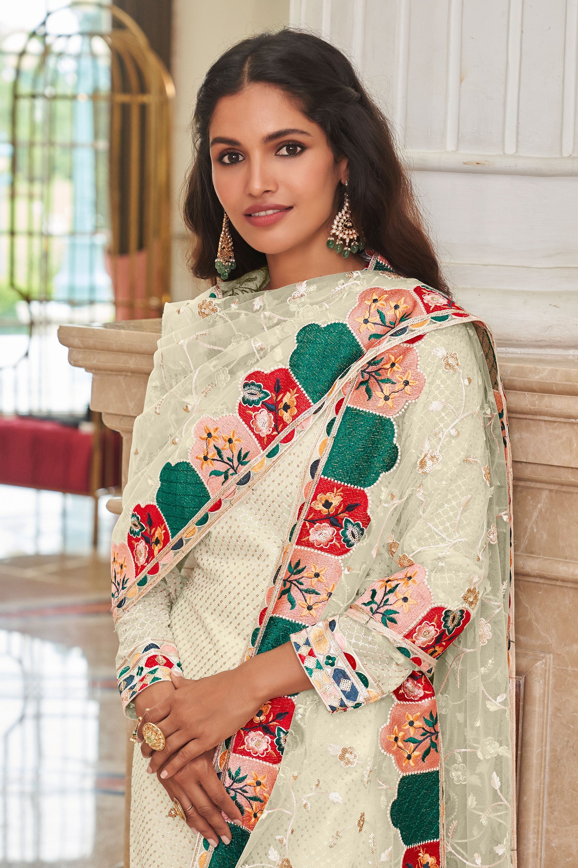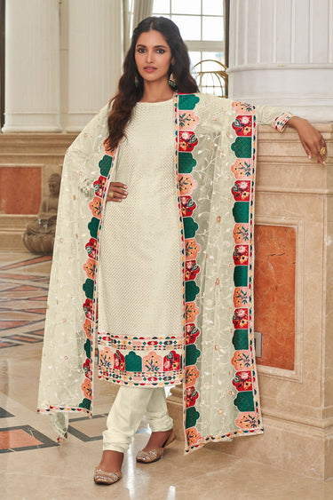 Vartika Singh Radiant Off White Color Georgette Straight Cut Suit