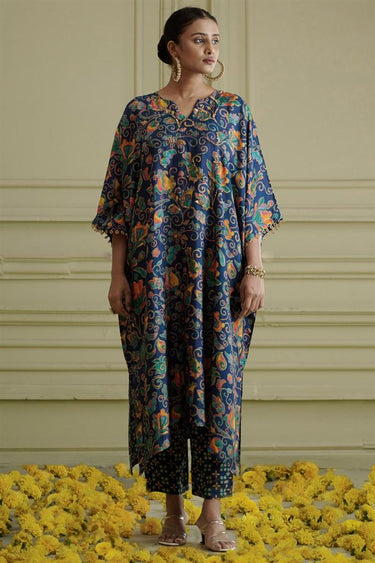 Exclusive Blue Color Silk Fabric Hand Embroidered Fancy Readymade Kaftaan Set