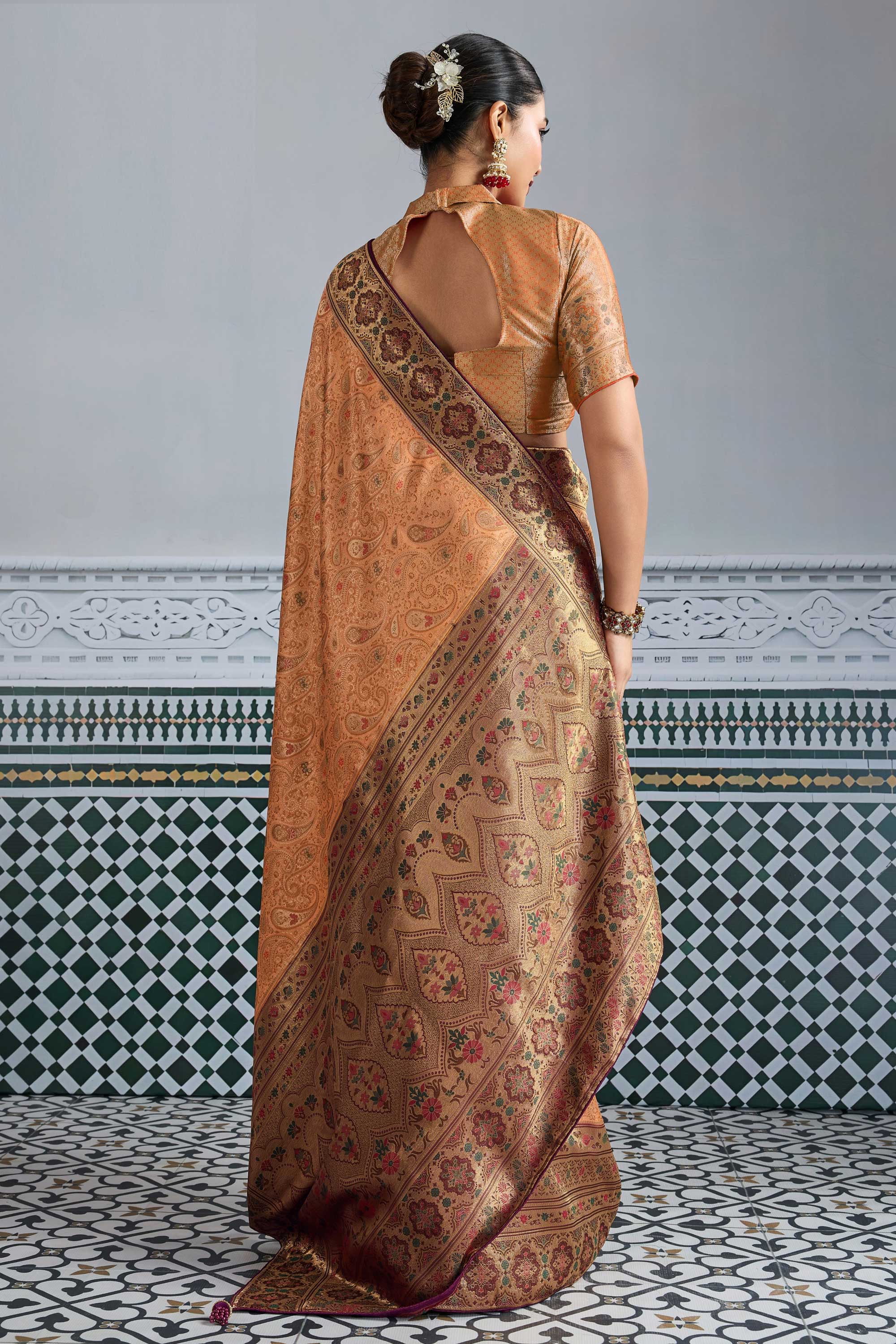 Peach Weaving Work Traditional Kanjivaram Silk Saree