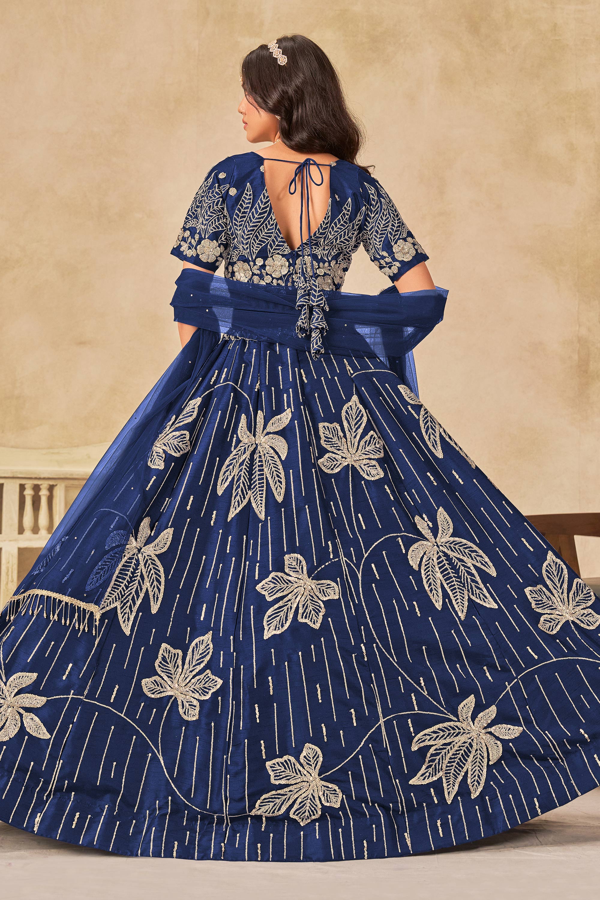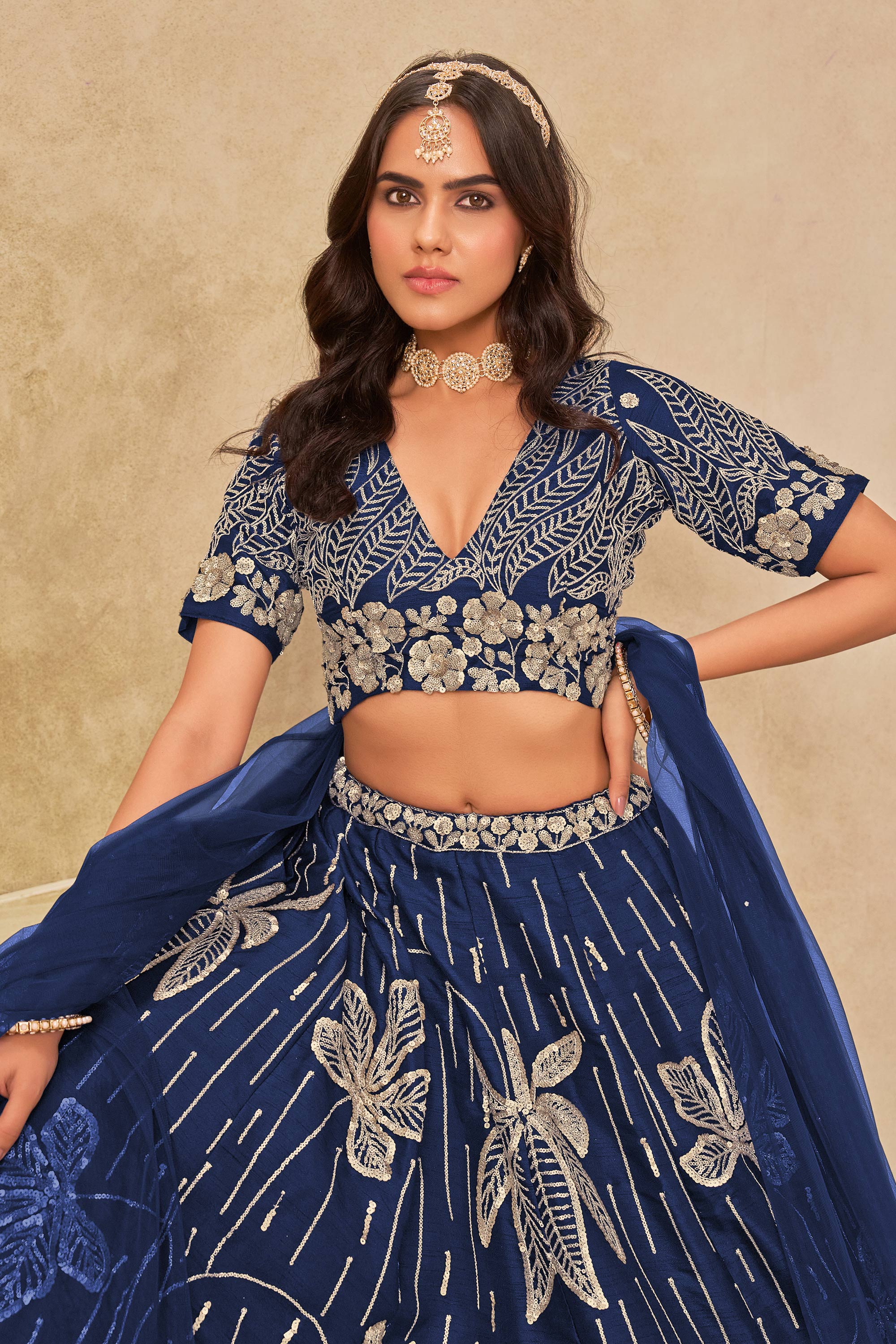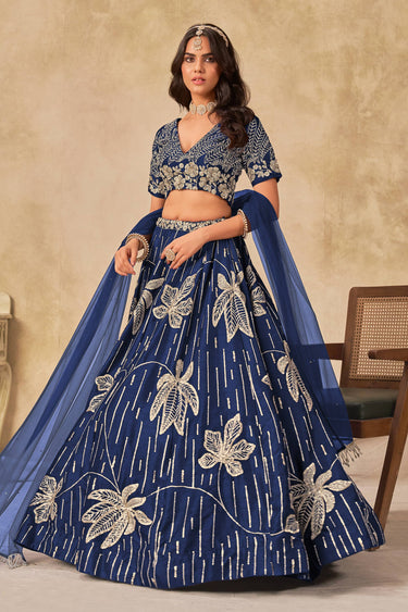 Blue Art Silk Heavy Embroidered Function Wear Lehenga Choli