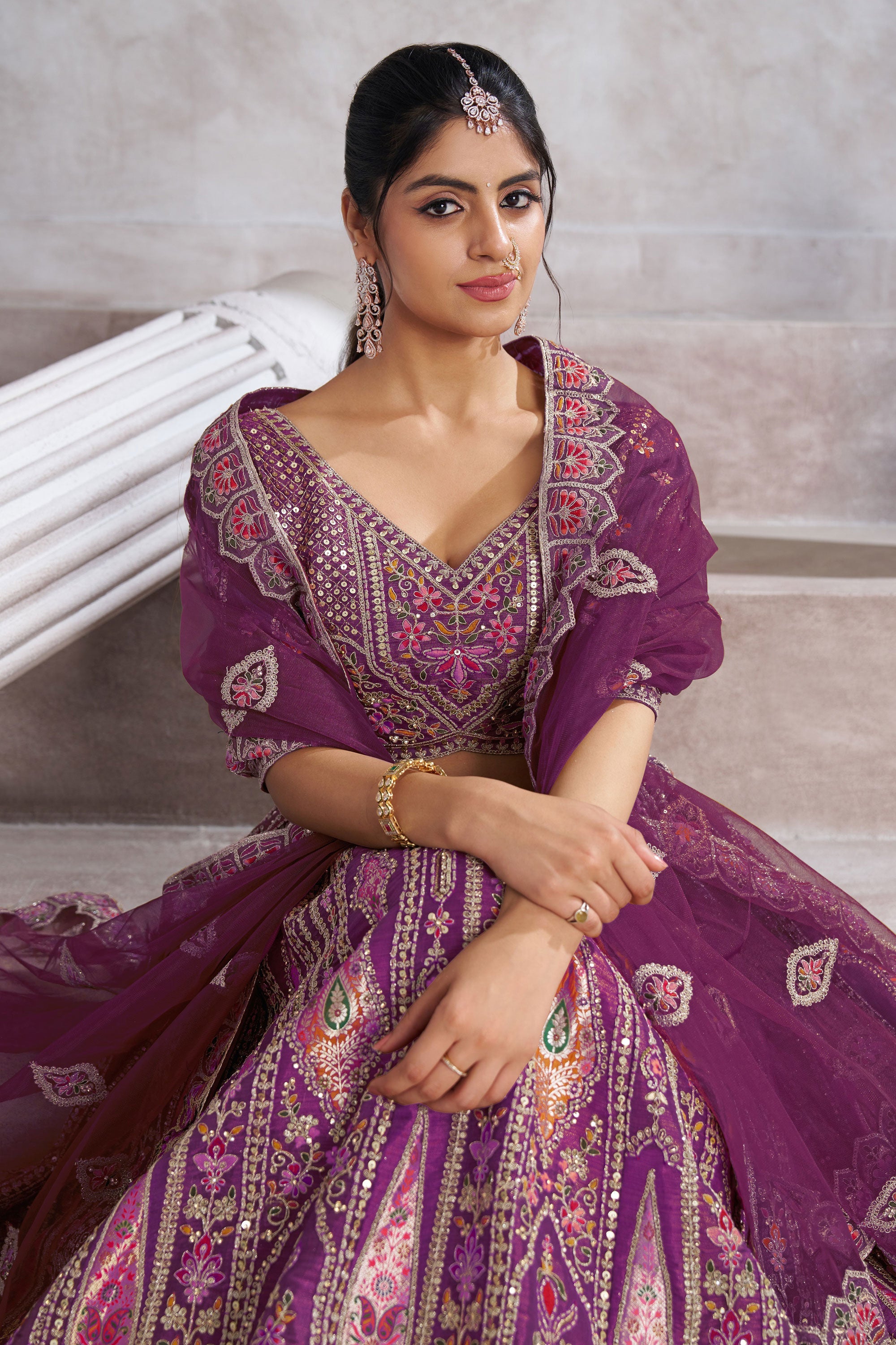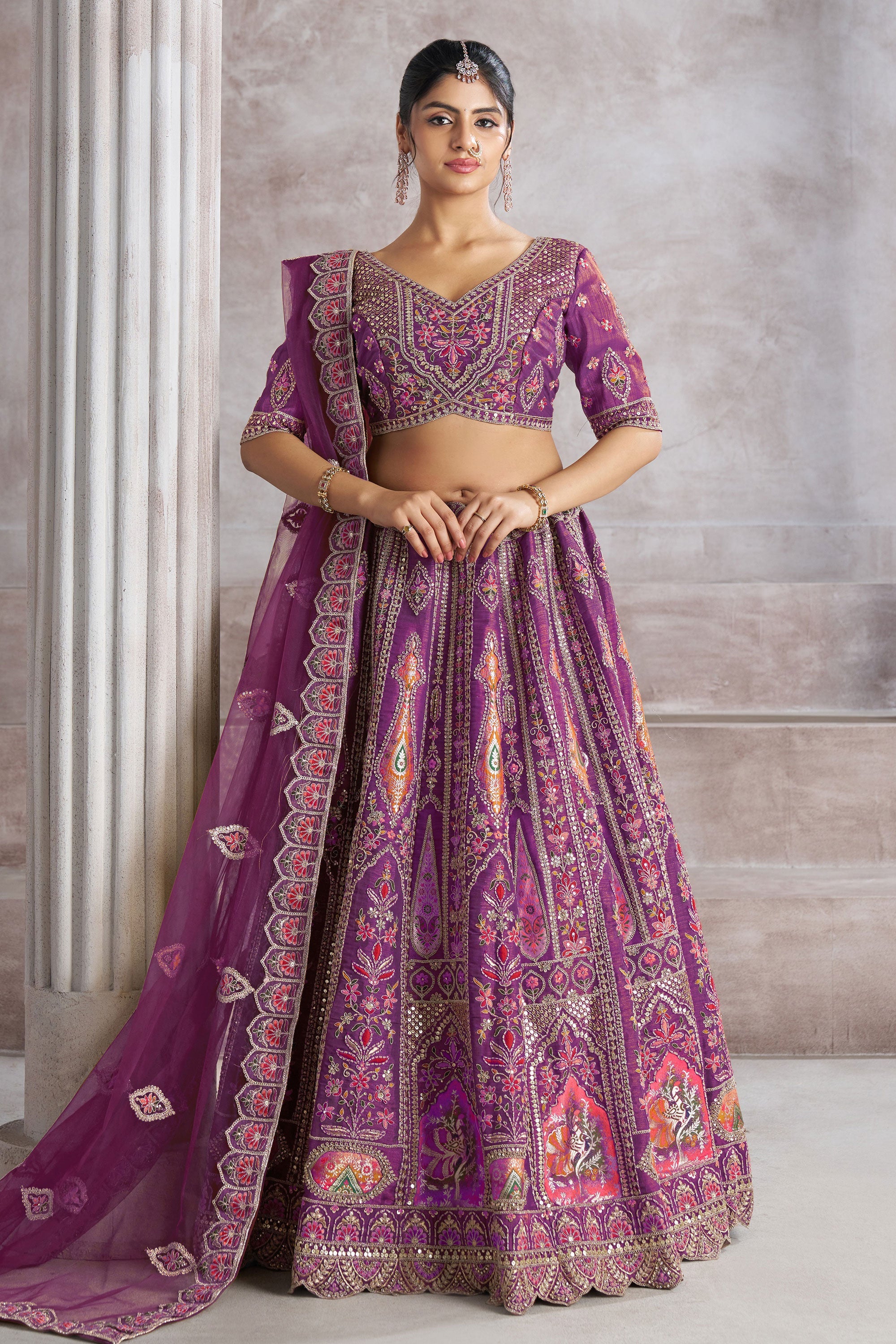 Purple Banarasi Silk Fabric Lehenga Choli