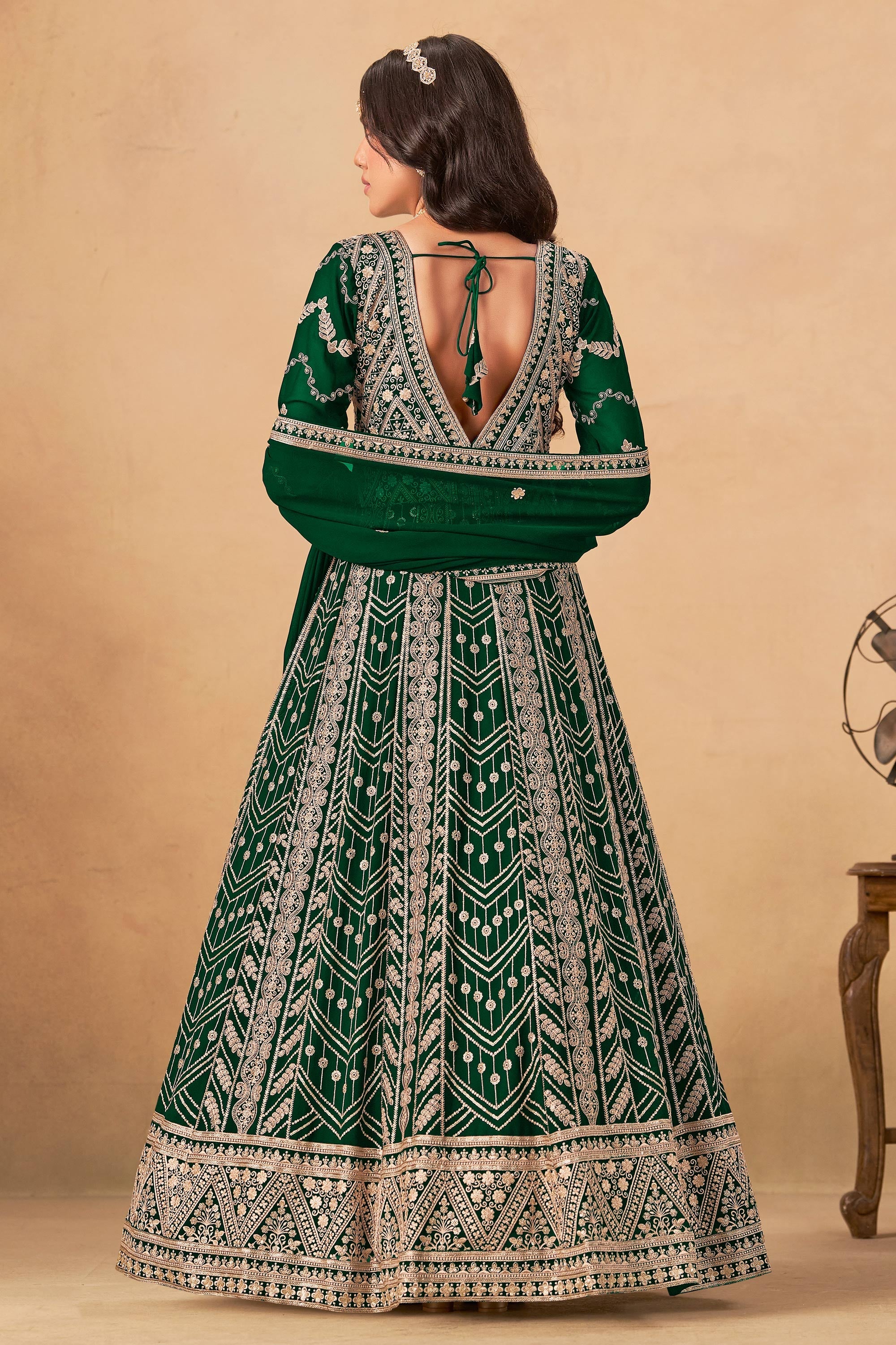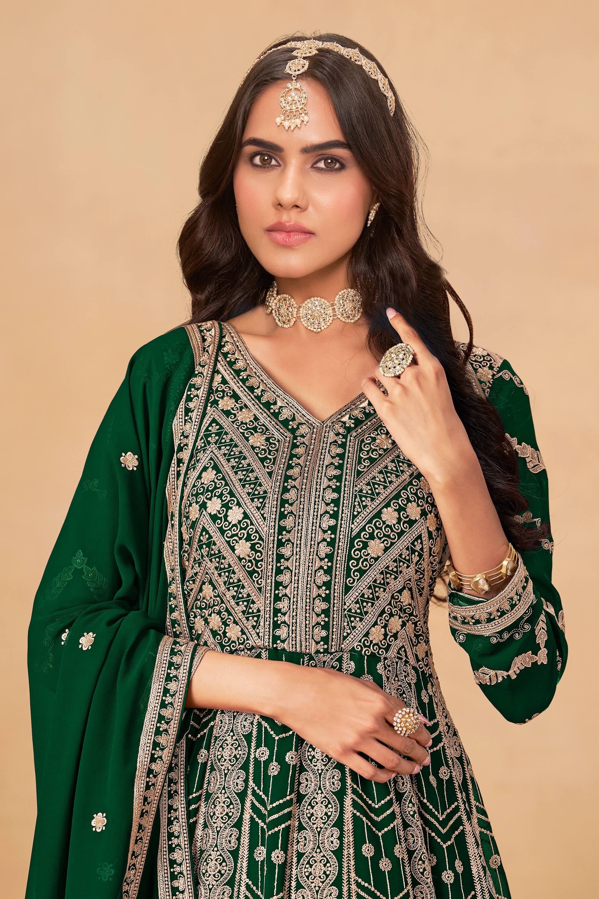 Georgette Embroidered Work Dark Green Designer Anarkali Suit