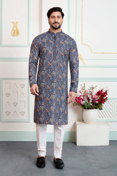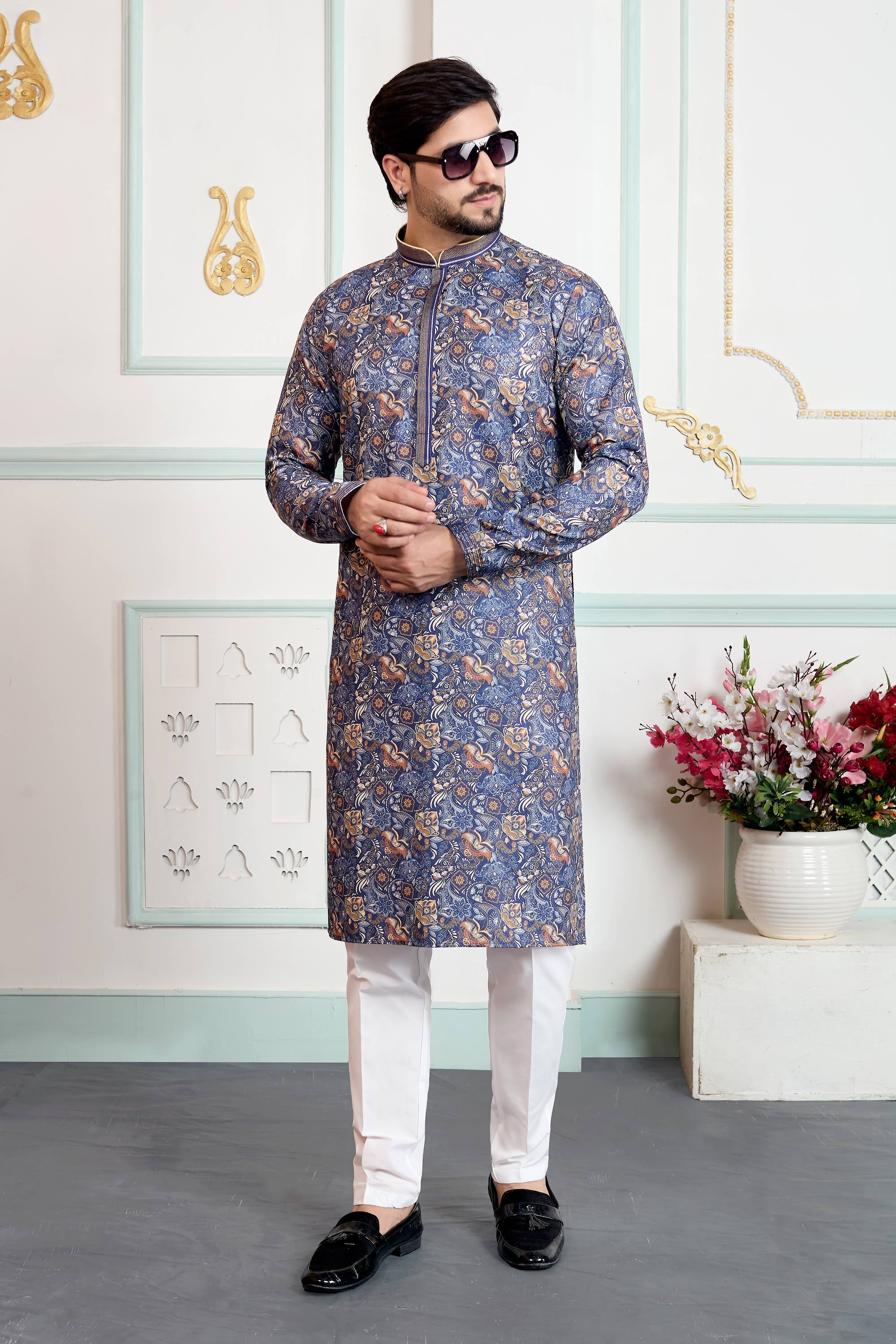 Make a graceful festive statement with this Mens Kurta Pyjama Set, thoughtfully designed for celebrations. The embroidered art silk kurta delivers a polished appearance, while the art Banarasi silk Aligadhi pant enhances traditional charm, and slight color variations may occur due to digital photography.