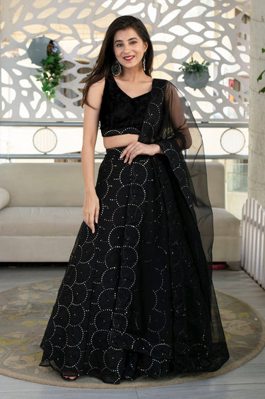Black Organza Sangeet Wear Sequins Work Chaniya Choli
