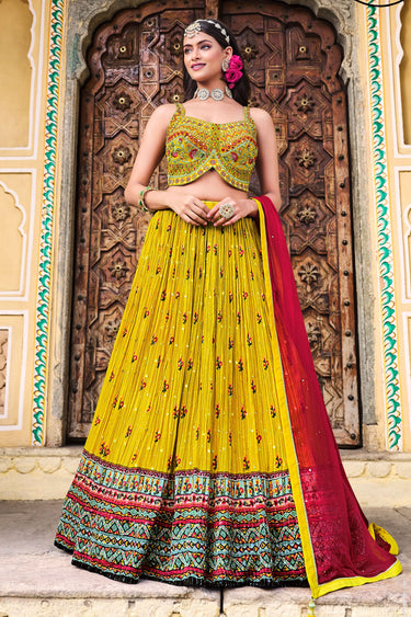 Mustard Embroidery Work Readymade Lehenga Choli