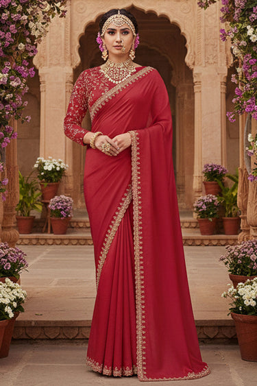 Engaging Red Color Crepe Fabric Saree With Fancy Work
