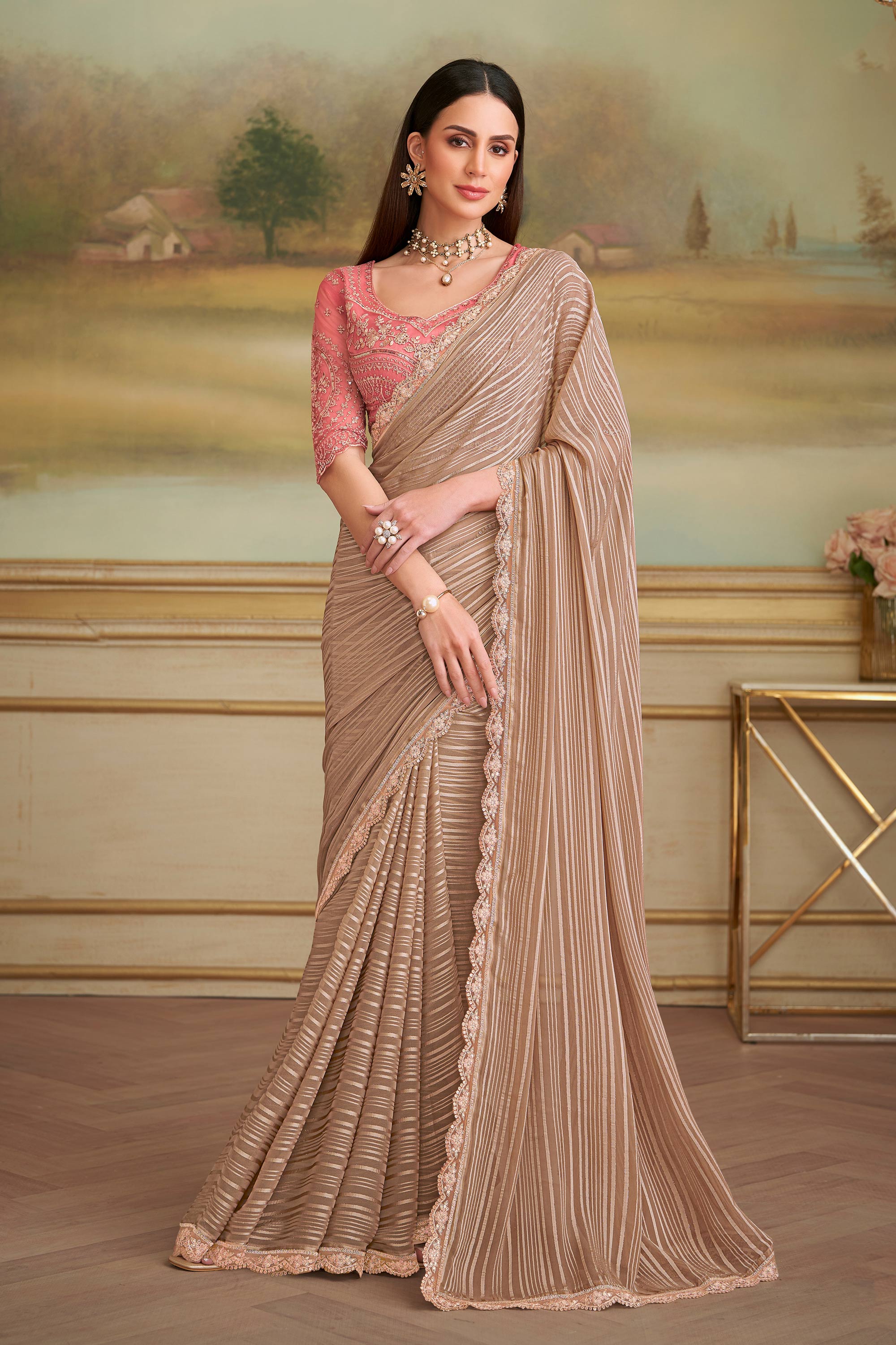 Georgette Fabric Peach Festive Wear Saree