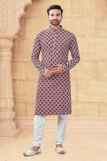 Elegance Embellished Maroon Long Kurta Pyjama For Men