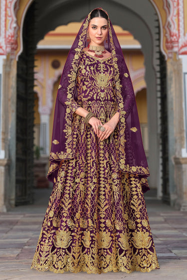 Festive Wear Net Fabric Floor Length Anarkali Suit In Purple Color