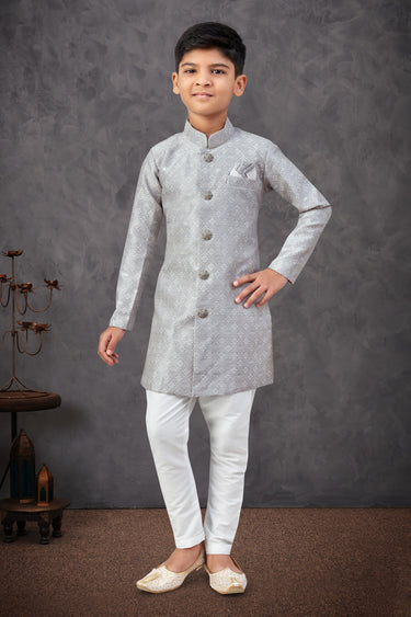 Jacquard Fabric Grey Color Traditional Wear Boys Readymade Indo Western