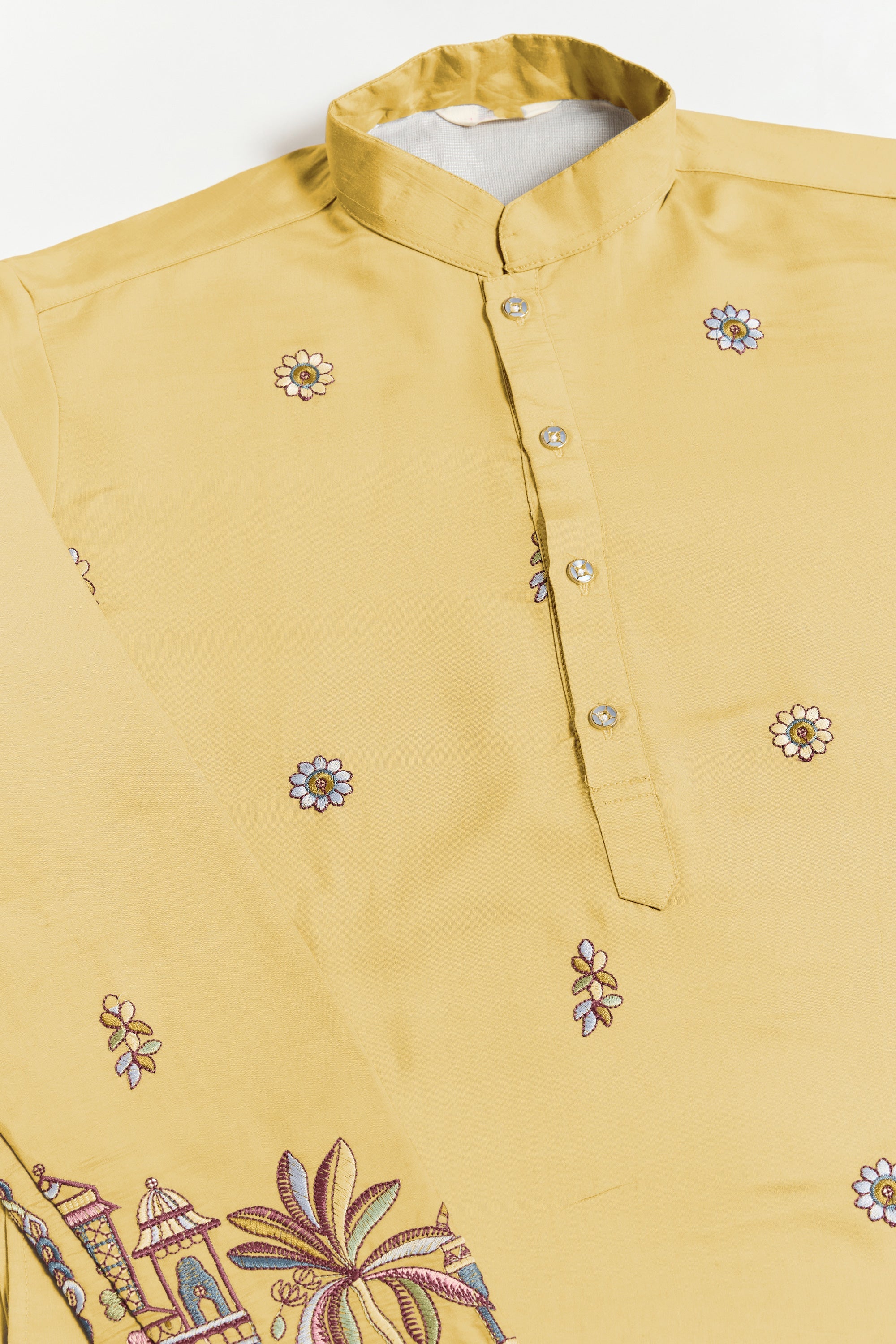 Yellow Readymade Sequins Embroidery Men Kurta With Dupatta