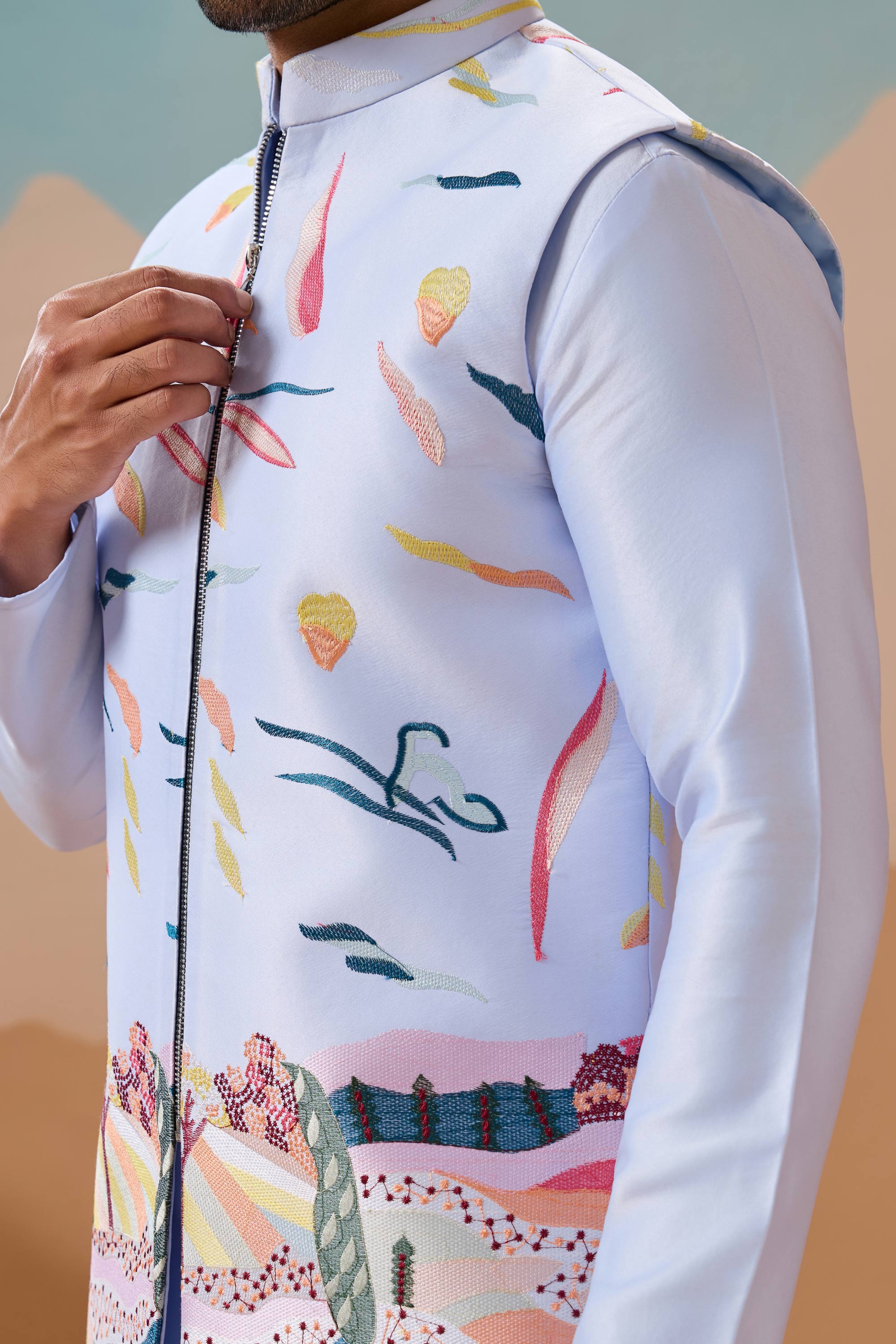 Embroidery, patchwork, and threadwork may exhibit slight irregularities—these natural variations enhance the unique charm of each piece. To maintain its beauty, we recommend turning the garment inside out before washing to prevent abrasion.