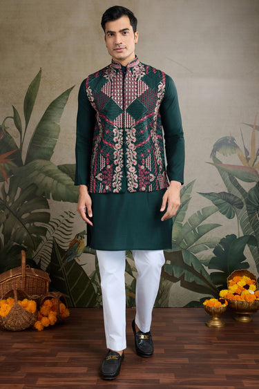 Festive Wear Green Viscose Silk Readymade Lovely Men Kurta With Jacket