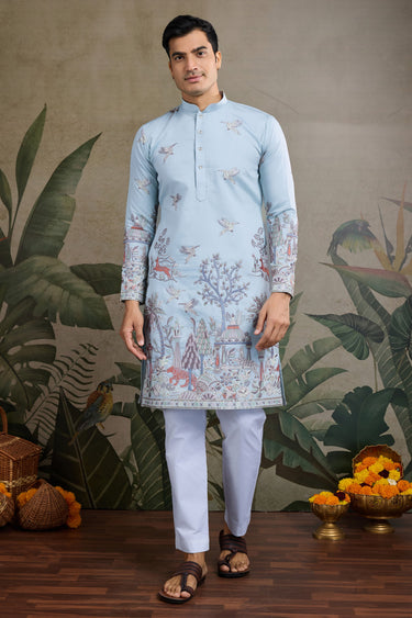 Viscose Silk Sky Blue Festive Wear Readymade Men Stylish Kurta