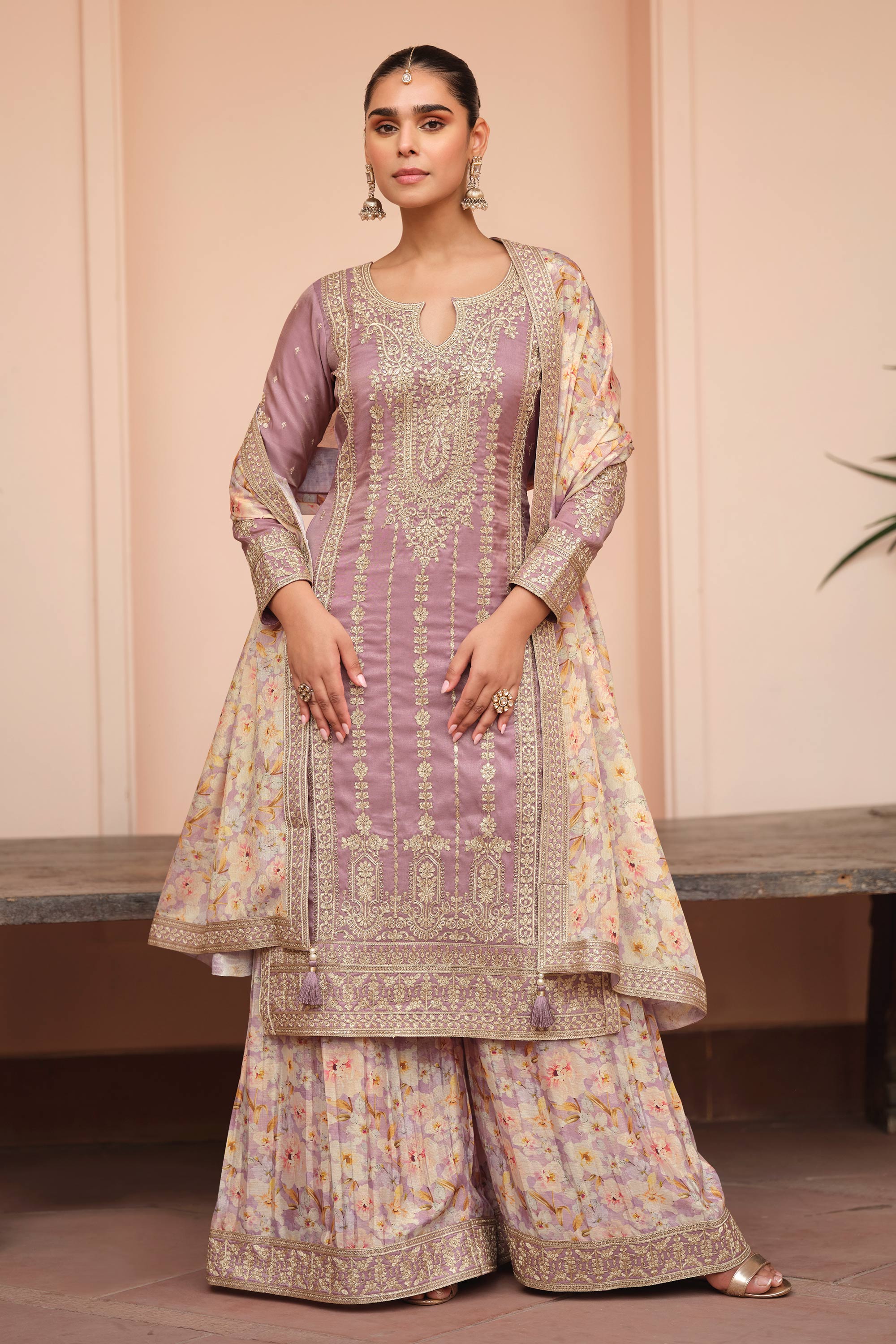 Elevate your style with the Art Silk Embroidered Designer Sharara Style Palazzo Salwar Kameez. Crafted with fine attention to detail, this outfit showcases intricate embroidery on luxurious art silk fabric. The sharara-style palazzo pants add a graceful touch, making it a perfect choice for festive occasions, weddings, or traditional gatherings. Designed for both comfort and elegance, it combines modern fashion with a timeless cultural appeal. Available in multiple sizes and vibrant colors, this ensemble ensures you stand out in any crowd. Add it to your wardrobe today for a sophisticated, chic look that’s truly one of a kind.