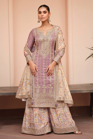 Attractive Pink Art Silk Embroidered Sharara Style Palazzo Suit