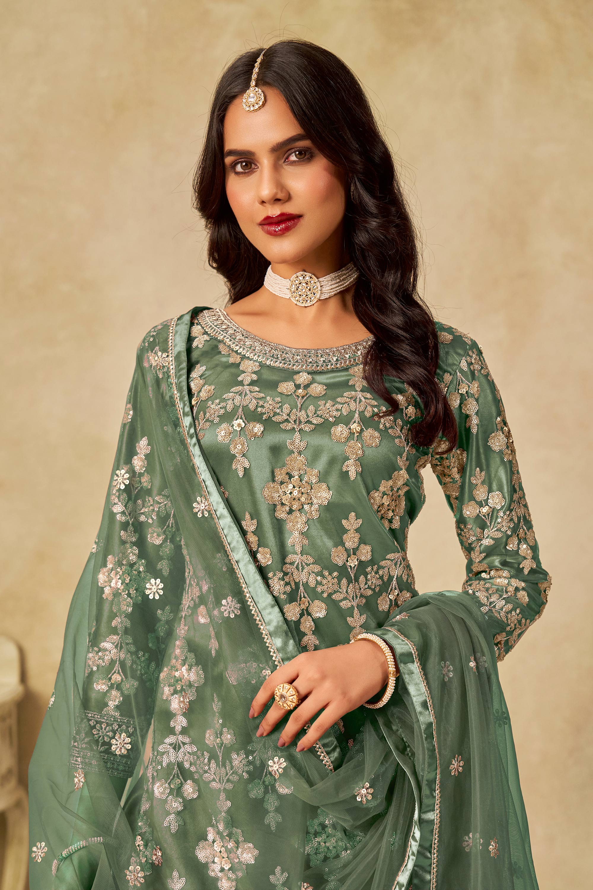 Sea Green Net Designer Sharara Palazzo Salwar Kameez