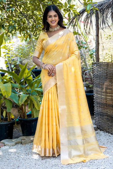 Daily Wear Cotton Fabric Yellow Color Zari Woven Border Saree