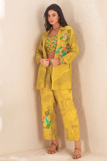 Exclusive Yellow Multicolored Sequins 3 Piece Co Ord Set With Camisole