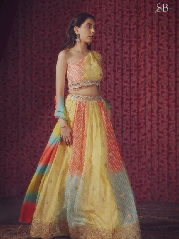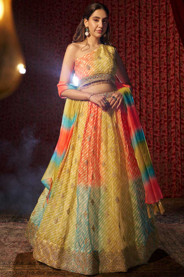 Festive Fashion Organza Fabric Yellow Color Lehenga