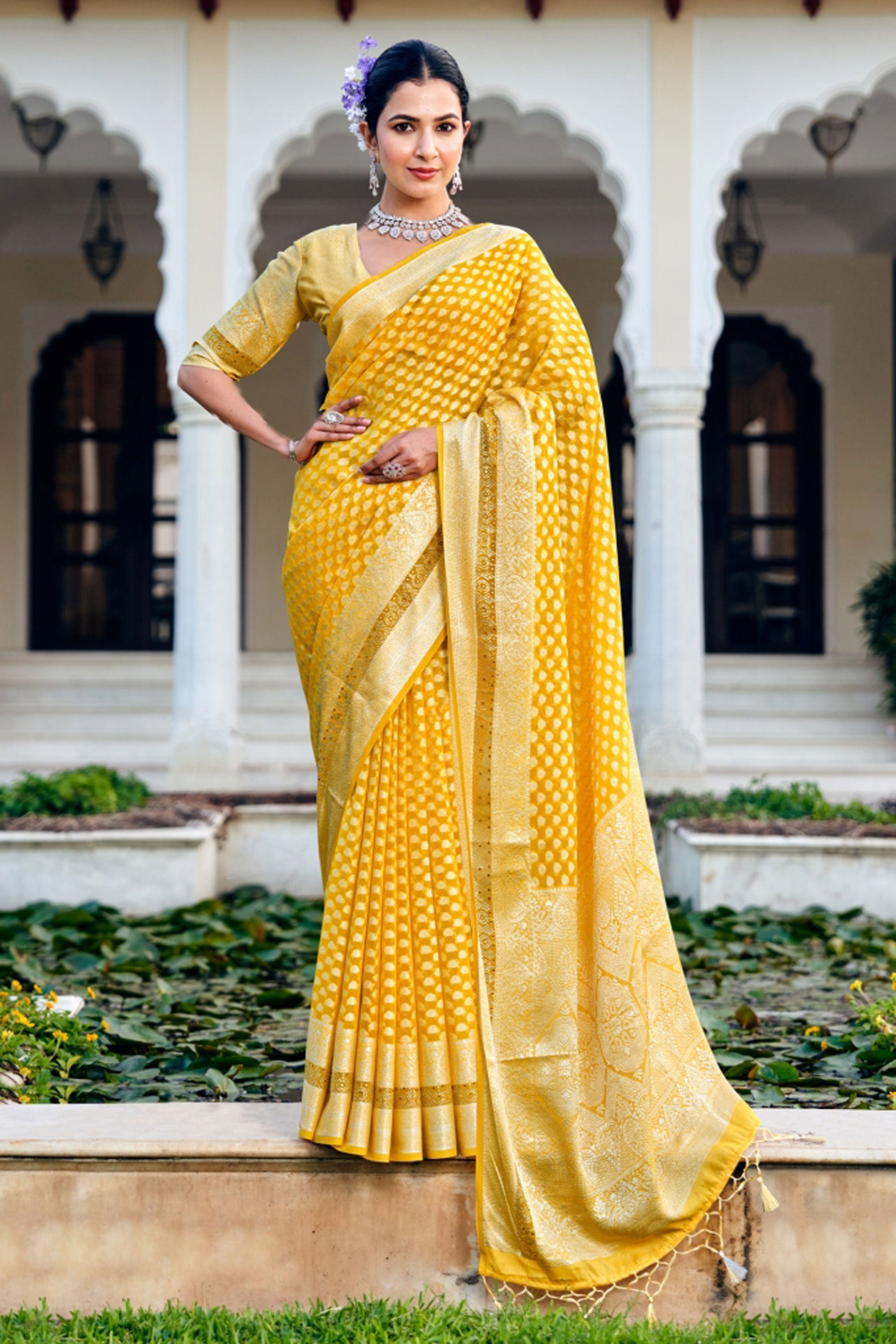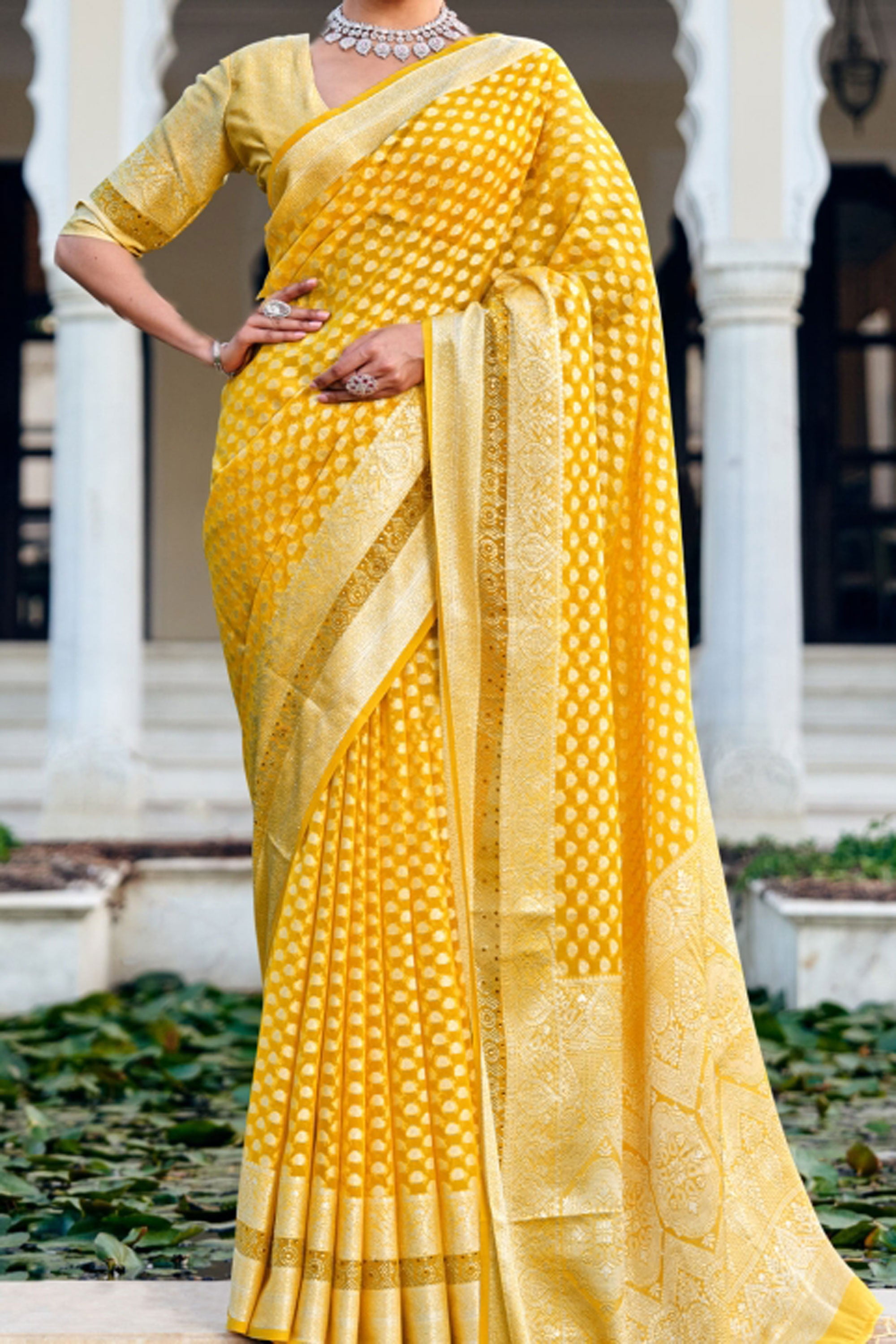 Glorious Festival Wear Yellow Weaving Work Georgette Saree