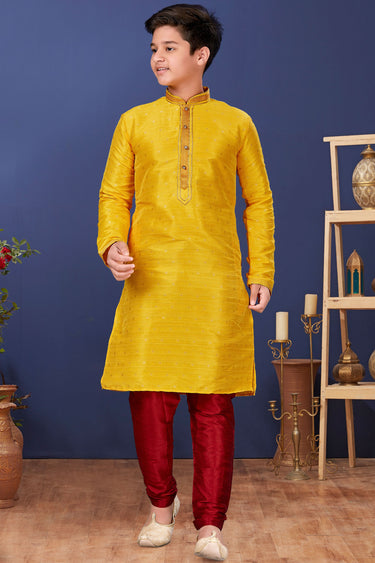 Occasion Wear Yellow Color Art Silk Boys Trendy Readymade Kurta Pyjama