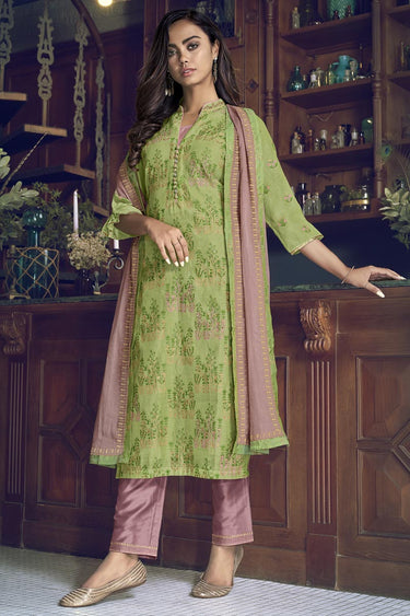 Green Color Art Silk Fabric Alluring Party Style Salwar Suit