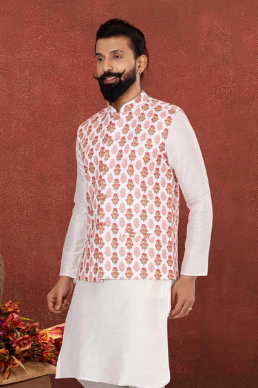Beautiful Off White Color Wedding Wear Readymade Jacket For Men In Cotton Fabric