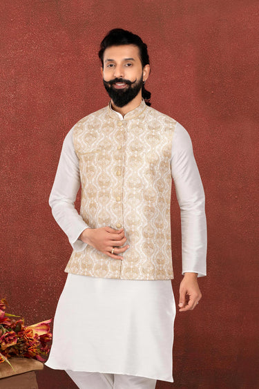 Beige Color Dhupion Silk Fabric Wedding Wear Designer Readymade Jacket For Men