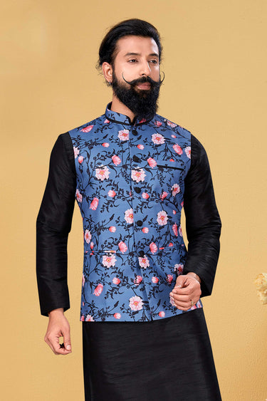 Blue Color Sangeet Wear Readymade Men Jacket In Cotton Fabric