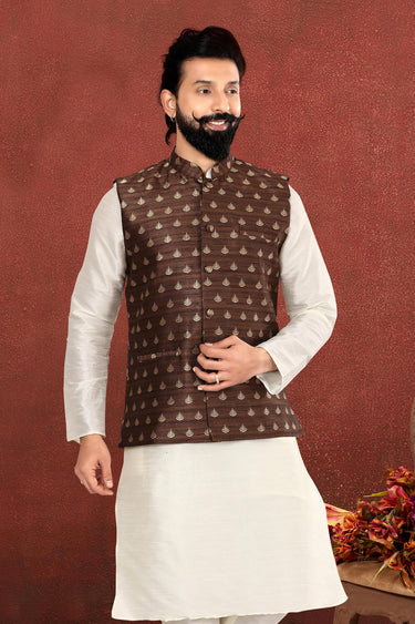 Brown Jacquard Silk Fabric Sangeet Wear Trendy Readymade Men Jacket