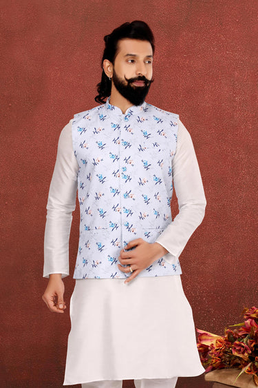Cotton White Color Wedding Wear Readymade Designer Men Jacket