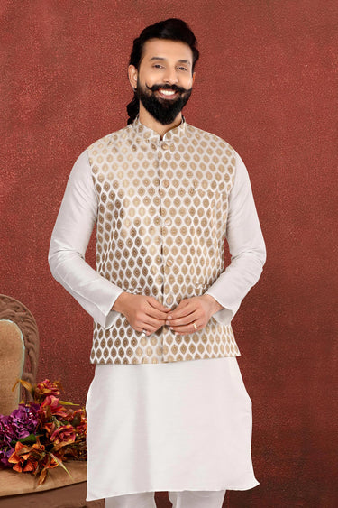 Cream Jacquard Silk Fabric Magnificent Readymade Men Jacket For Wedding Function