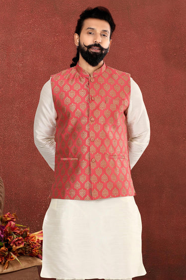 Jacquard Silk Fabric Function Wear Pink Color Readymade Men Jacket