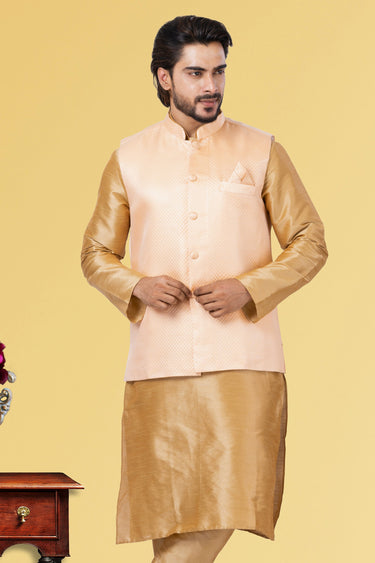 Peach Fancy Fabric Sangeet Wear Trendy Readymade Jacket For Men
