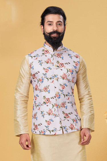 Sangeet Wear Beige Color Readymade Men Jacket In Cotton Fabric