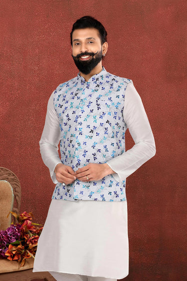 White Color Wedding Wear Cotton Fabric Designer Readymade Jacket For Men