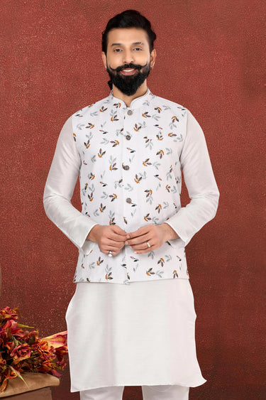 White Cotton Fabric Graceful Readymade Men Jacket For Wedding Function