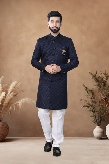 Jacquard Lovely Blue Festive Wear Readymade Indo Western For Men