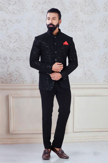 Fetching Black Color Terry Velvet Jodhpuri Suit For Wedding Wear