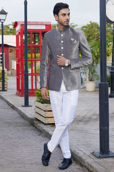 Velvet Grey Dazzling Jodhpuri Jacket For Wedding Function