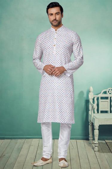 Festive Wear Readymade Lovely White Printed Kurta Pyjama For Men