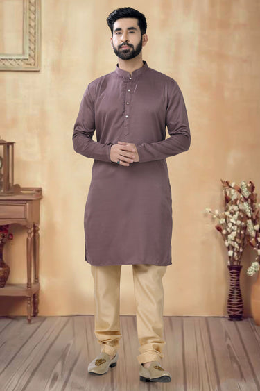 Wine Cotton Graceful Readymade Men Kurta Pyjama For Festive Wear