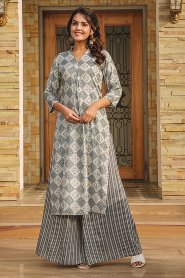 Introducing our new season's offering, a sophisticated Rayon Kurti bottom set in the subtle hue of grey. Made from pure Rayon, the set exudes elegance and grace with a hint of stylish flair with its heavy digital print work. Measuring up to 46 inches, the top length provides a sleek and flattering fit. The readymade bottom set is offered in various sizes, from XS up to a roomy 6XL. Maintain its charm and appearance with a simple normal wash or hand wash.