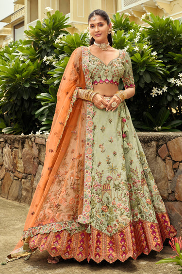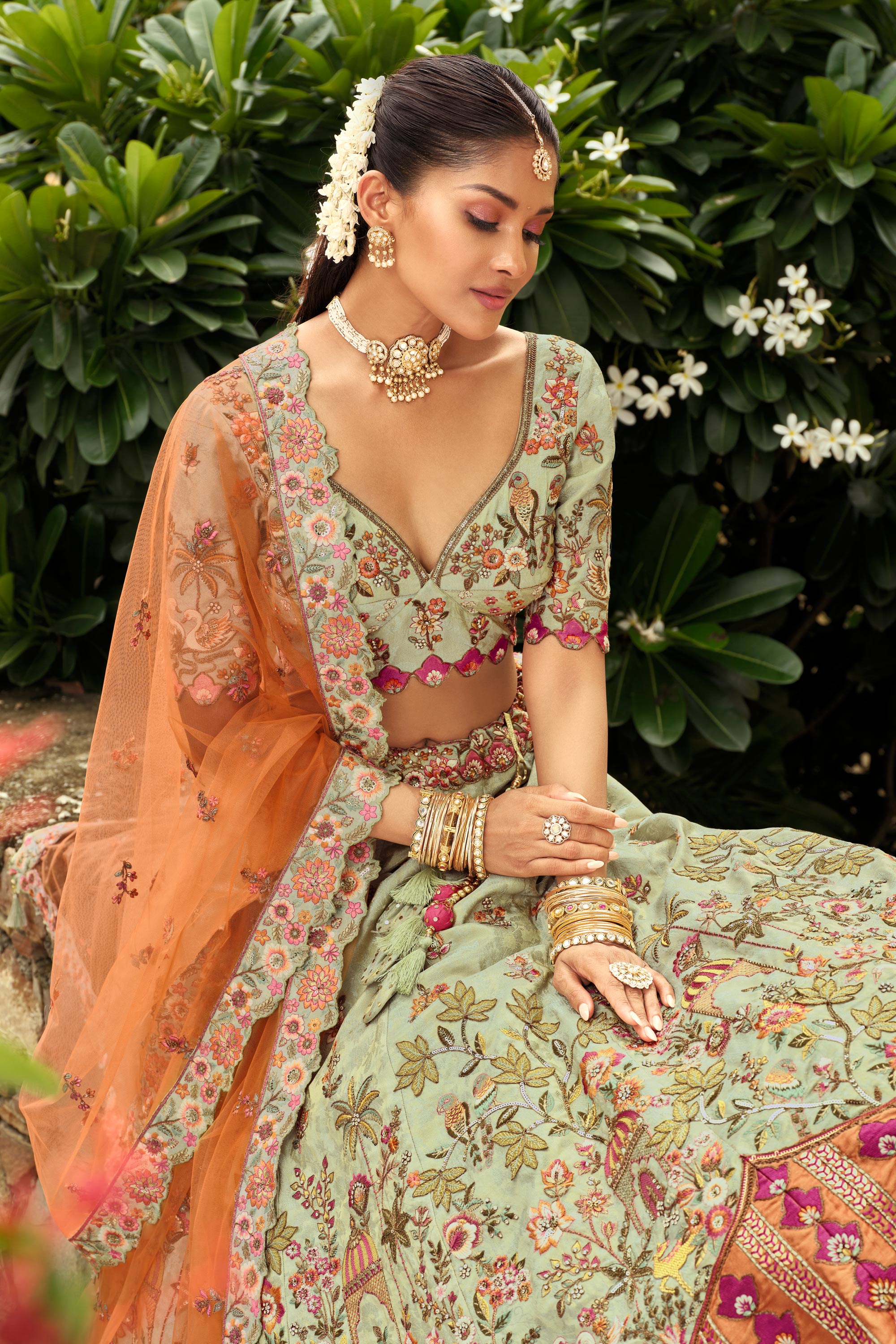 Attractive Sea Green Wedding Wear Readymade Lehenga Choli