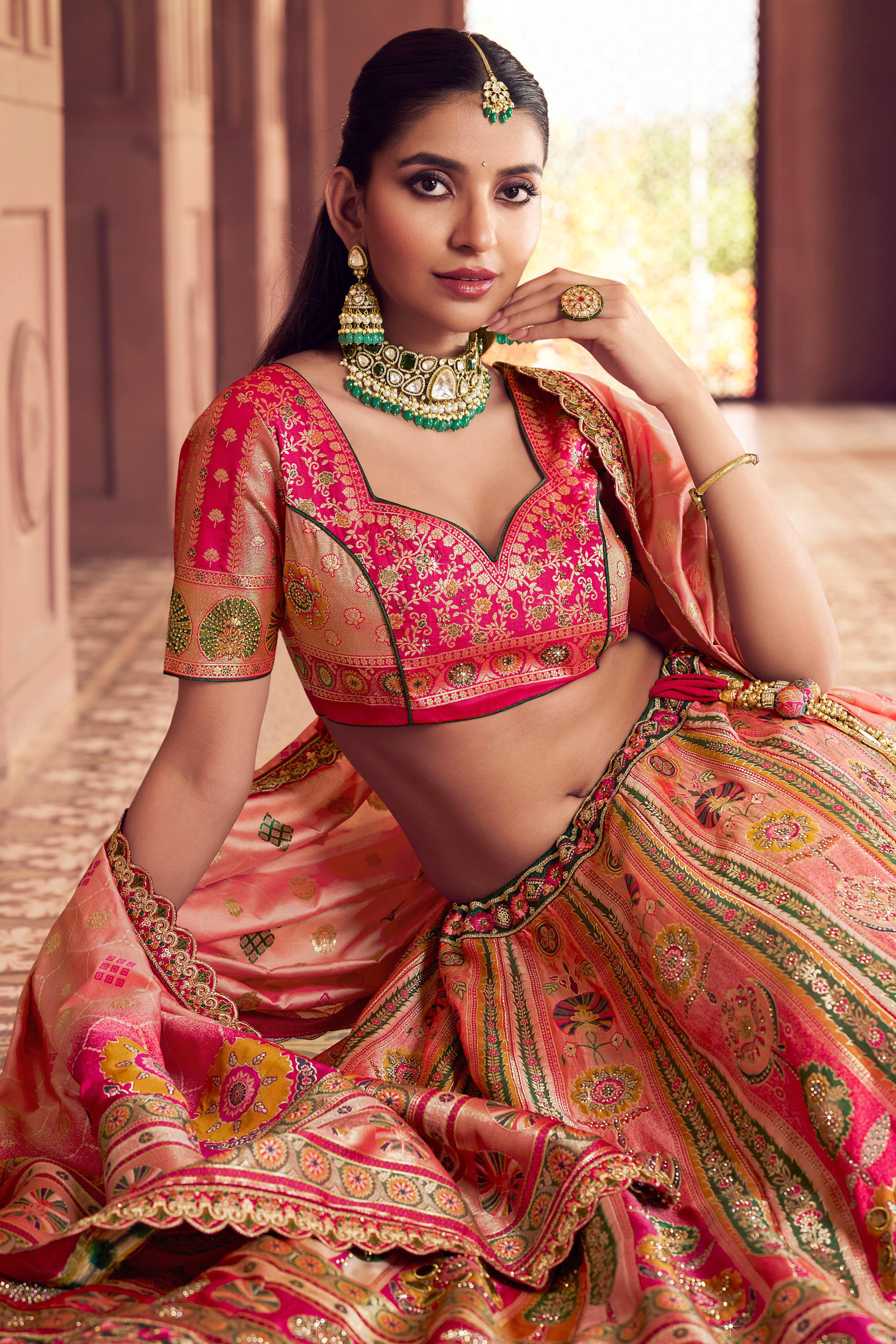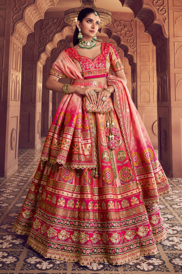 Banarasi Silk Bridal Lehenga Choli In Pink Color