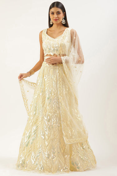 Classic Sequins Work Designs Yellow Color Sangeet Wear Lehenga Choli